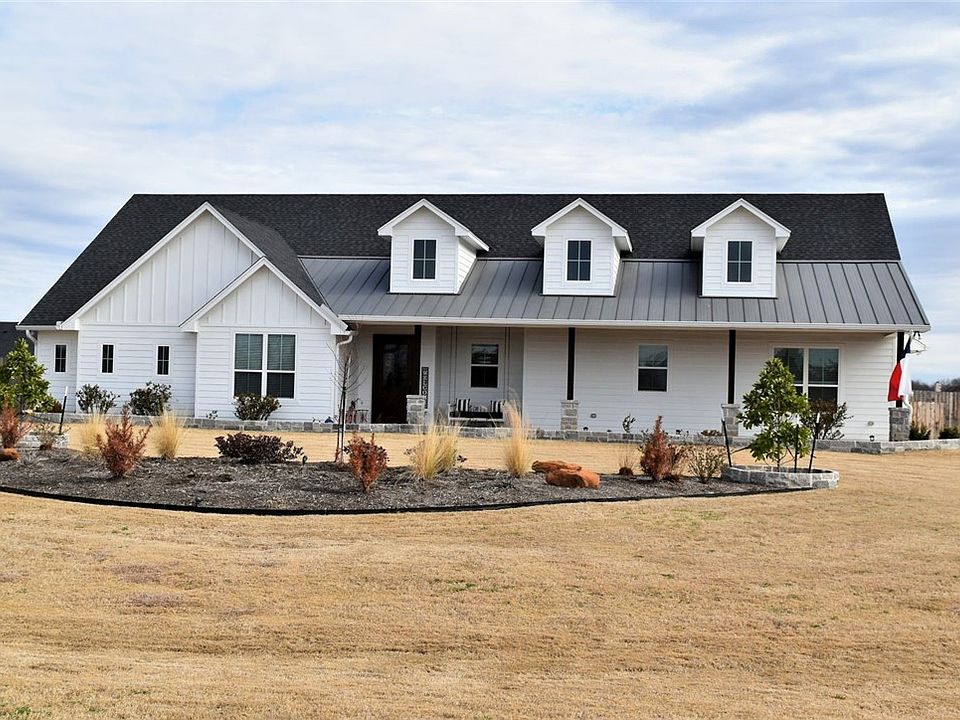 Executive farmhouse style home built by John Finn in 2019 is a spectacular 4/3.5 ranch home nestled in the desirable Austin Colony community! The well-designed open floor plan is ideal for families & entertaining as it is all arranged around the heart of the home. The isolated master bd/bath, a large living room with beautiful wooden beam coffered ceilings, easy care tile flooring, built in cabinetry with floating shelves surround the fireplace with plenty of natural light and a surround sound for easy entertaining. The gorgeous kitchen highlights granite counters, a large island with seating areas, electric cooktop, & a large breakfast area. The primary bedroom has ample space to accommodate a king size bed and the wooden barn doors open to a wooden ceiling and beams show casing the free standing bathtub. Dual vanities with ample counters and cabinets, a large walk-in shower, a walk in closet with built in shelves with an island closet is located next to the laundry room for convenience. An oversized 2-car garage. The .80 acre is completely fenced with a covered patio, a pergola with an automatic yard irrigation system. The backyard provides enough room for Fido, various outdoor activities or even the possibility of a pool. The home is perfectly situated in a gated community with easy access to China Spring Road, minutes from local restaurants & the highly rated China Spring Schools. Check out the virtual tour: https://my.matterport.com/show/?m=2Kn1dbme6hX&mls=1