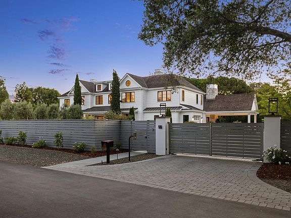 Tucked within Atherton's prestigious Lindenwood enclave, this 2021-built estate offers over 10,500 sqft of refined living. A gated entry & motor court introduce the home, where soaring ceilings, wide-plank hardwood floors, bespoke finishes & ample natural light set a tone of understated luxury. The dramatic great room anchors the home, with a wall of glass doors for seamless indoor-outdoor living. The adjacent chef's kitchen features quartz countertops, a large center island, abundant cabinetry & Wolf / Sub-Zero appliances. A formal living room, elegant dining room, executive office, mudroom & two bedroom suites complete the main level. Upstairs, three secondary suites complement the luxurious primary suite - a true retreat with two private terraces, fireplace, spa-inspired bath & spectacular designer walk-in closets. The lower level is ideal for entertaining, with a theater, gym, spa bath, wet bar, wine cellar, rec room & guest suite with exterior access. The resort-like grounds include a sparkling pool & spa, al fresco dining terraces, expansive lush lawn, mature landscaping & a covered loggia with fireplace. A guest house is ideal for visitors or multi-generational living. This rare offering is moments from top Menlo Park & private schools, Stanford & leading tech campuses.