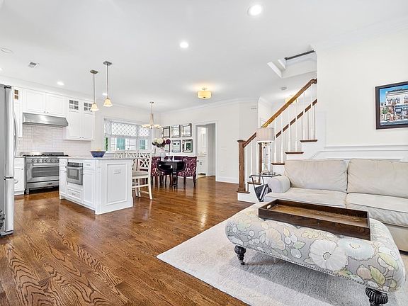 55 Jefferson Street, Unit B-Newly built in 2015 and located close to all major routes and public transportation with a walk score of 77 (“very walkable”).This townhouse has an open floor plan featuring a bright custom eat-in kitchen with granite countertops, a large island, and stainless-steel appliances. The kitchen is open to the living room that includes a gas fireplace and large windows welcoming natural sunlight. The property features 4 large bedrooms with 2 full baths and 2 half baths. The main bedroom has dramatic 12-ft-high cathedral ceilings, a spacious walk-in closet with custom shelving, and a private main bathroom with double sinks and a large waterfall shower. The 1st and 2nd floors have hardwood floors throughout and the roomy lower level is finished with new carpeting. The property is set back off the road and has a large private (exclusive use) fenced-in yard. The property also has ample parking, including an attached, spacious single car garage with charging port