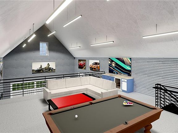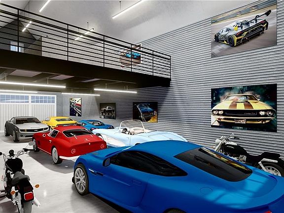 Newport Car Vault Presidential Garage Suite - Luxury double suite with water views to Easton's Pond and distant ocean views. This suite offers parking 6 to 12 cars (with lift) and a large second floor mezzanine. Half bathroom located under the stairs with room for an optional work area or wet bar. A variety of optional customizations including car lift, heated radiant floors and elevator to mezzanine level. Can be combined with double suite next door for 4,000 square foot garage and 1,023 mezzanine for entertaining area.
