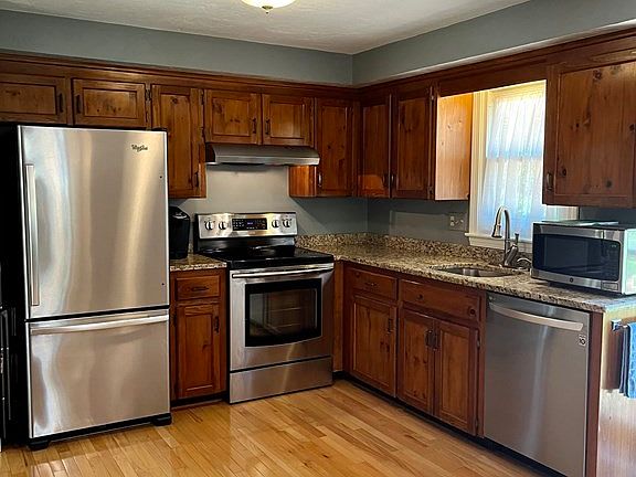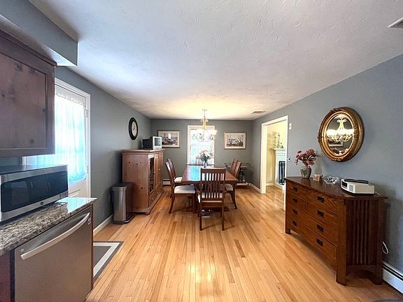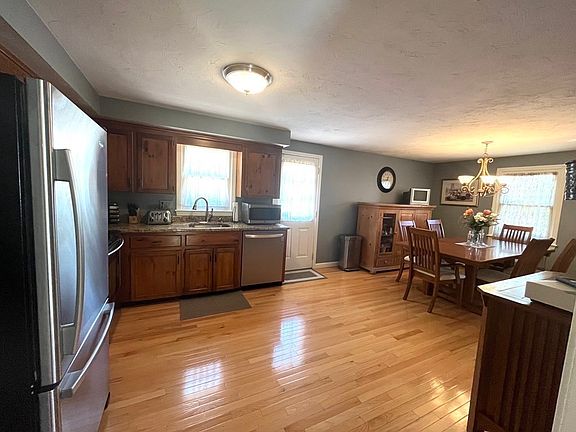 Natural sun lit home in the desirable town of Hopedale with 3 bedrooms and 2 full baths on a .42acre lot. The kitchen boasts stainless steel appliances and granite counter tops, opens to the dining room and adjoining the large living room with working fireplace. There are 3 bedrooms and 2 newly renovated full baths. Hardwood flooring throughout 1st level, finished basement with wainscoting and berber carpeting with room for entertaining and play space. Includes laundry hookup. Kitchen opens to an oversized deck leading to fenced in yard. Upgrades include: new central air, roof, furnace, hot water heater, windows, 6 panel doors, attic pull down access, stone wall surrounding additional parking.