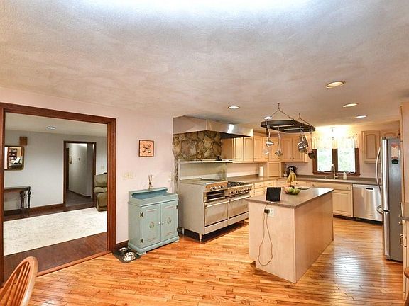 ONE OF A KIND CUSTOM RANCH HOME PERFECT FOR EXTENDED FAMILY in North Billerica. You've never seen a layout like this, with over 4,500 sq ft of living space, with a main level boasting 2,400 sq ft and a finished lower level with another 2,100 sq ft. Fantastic OPEN CONCEPT floor plan with a huge, updated kitchen and dining area, a large combination pantry/laundry room, a stunning family room with cathedral ceiling, skylights, and phenomenal wide pine floors, and three generous bedrooms, including a MASTER SUITE with new hardwood floors, full bath, dressing area, and walk-in closet. Downstairs you have what could easily be a utility/in-law apartment, including huge eat-in kitchen, living room, bedroom, den, and walk out to a covered patio area. Large lot, 2 CAR GARAGE, new hardwood in some rooms, lots of recessed lighting throughout, huge workout room, freshly painted exterior, and some new interior paint too. Brand new septic as well. You'll feel like you're on vacation year-round!