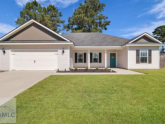 Adorable single level home in Pembroke is awaiting its new owners! With no HOA, built in 2020, public water and sewer, and a fenced in yard, this home is the epitome of low maintenance. Inside you will find tray ceilings, LVP flooring, and recessed lighting. An open concept living, kitchen, and dining make entertaining a breeze. The kitchen features espresso cabinets, a pantry, stainless appliances, and a breakfast bar. The primary suite is spacious and the ensuite bath has a walk-in shower, separate tub, and dual sinks. 2 guest bedrooms and a hall bath are on the opposite side. Relax outside on the patio with the firepit and privacy fenced yard! Centrally located to downtown Pembroke and close to the public library and award-winning Bryan county schools. Book your showing today!