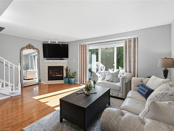 Welcome home to Kerman Avenue ideally situated close to all town amenities. This bright, spacious and welcoming end-unit townhome boasts three bedrooms, hardwood floors, vinyl flooring, finished lower level, stately fireplace, ensuite privilege and glass enclosed shower. Enjoy roomy dining area, sizeable lower-level storage/laundry room, updated windows (2025), updated deck (2025), updated basement carpeting (2025), generous front gardens and designated parking space. Perfected located close to parks, schools, the highway and the scenic towns along the Niagara Escarpment including Grimsby, Beamsville, Vineland and Jordan.