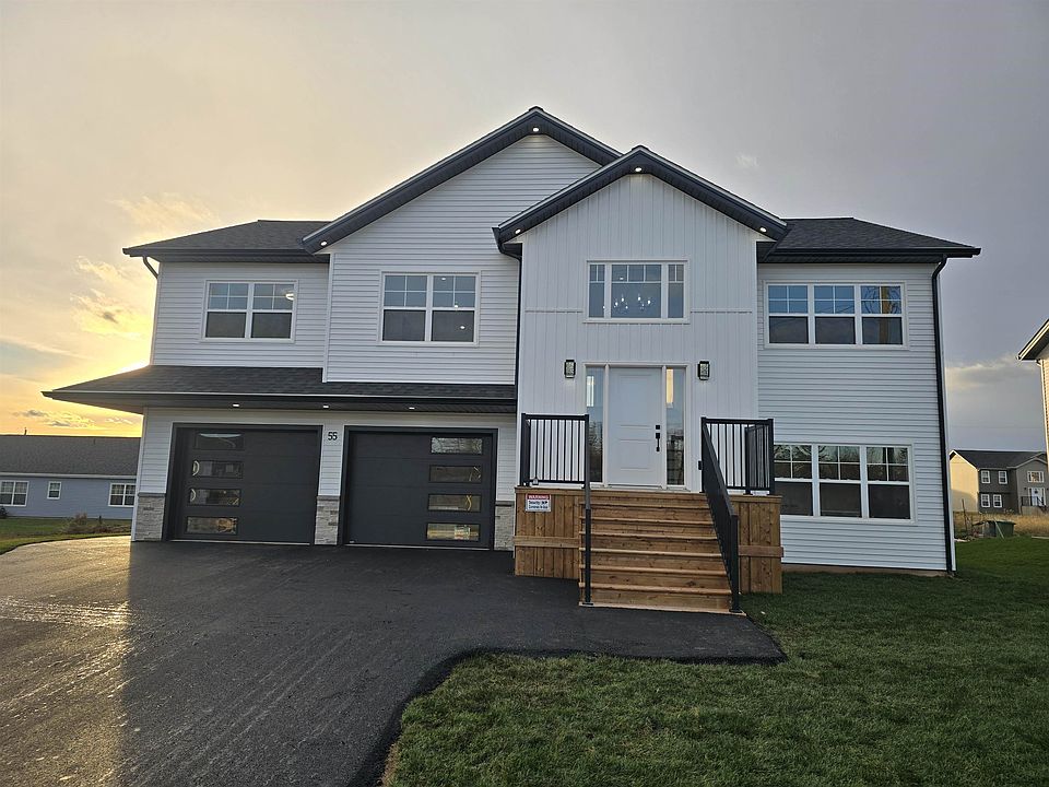 This beautiful newly constructed home in the family oriented Windsor Park is under construction in West Royalty with a secondary suite on the lower level. Separate entrance to each level of the home as well as individual electric meters. This family home is spacious and inviting from the moment you enter. The open concept living room features a vaulted ceiling. Custom kitchens on both levels. Exquisite lighting throughout. The large primary bedroom features a walk in closet as well as a full ensuite bath with shower and quartz vanity. Two more spacious bedrooms are located on the same level. A large pressure treated patio is accessible off the kitchen/dining room. On the lower level a full 2 bedroom apartment or in law suite with full kitchen facilities and a 4 piece bath. The home has many windows to take advantage of sun throughout the day. The home features two 18,000 BTU heat pumps for all your heating and cooling needs. Each level comes with a fridge, stove, and dishwasher. A great investment opportunity awaits. This home is situated on a lot that provides maximum sunlight. Make this home your next move and enjoy the peace and tranquility of Charlottetown's newest subdivision. Paved double driveway, grading and a seeded lawn will be completed prior to closing. Two Electric meters are included- One for each level. Note: Tax and Assessment values will be determined at closing. Owner is the listing agent. HST included in the price, HST rebate to be assigned to the vendor upon closing. 8 year New home warranty is included. All measurements are approximate and should be verified by the purchaser if deemed necessary.