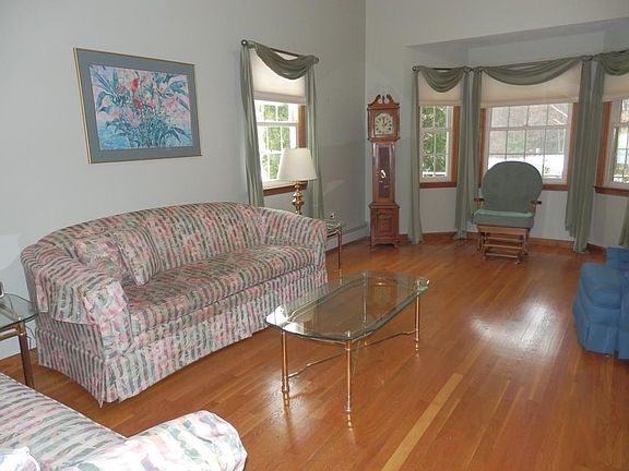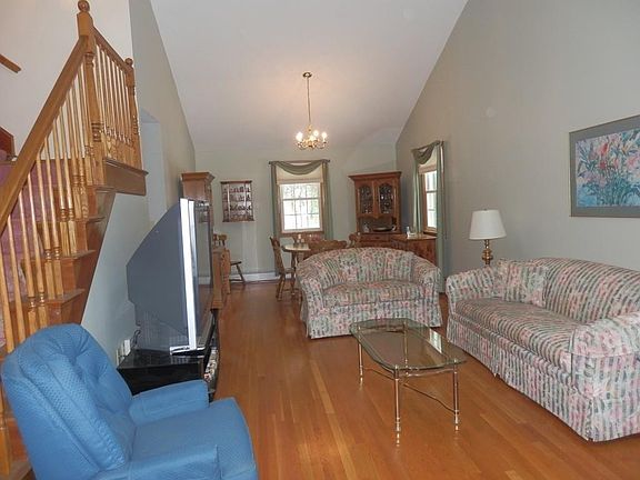 Contemporary set off the road, in a quiet area of Templeton. Cathedral Ceilings in the living room and dining room, with all hardwood flooring, kitchen has hardwood floors, granite counter top and lots of closets, family room is off the kitchen with hardwood floors and slider to back deck. There is half a bath in that area also, this also leads to the 2 car attached garage. The second floor has an open stair way overlooking the living room and dining room, three bedrooms, master has entrance to full bath and walk-in closet. The roof is four years old, the windows and siding are six years old, and the kitchen upgrades, floors and counters are 5 years old. Spacious backyard with special trees, and a shed. The 2 car garage has room for storage. Quiet Kyle Dr area, with all underground utilities for electric, cable and phone, town water and a passing title V.