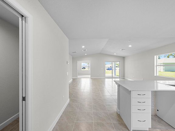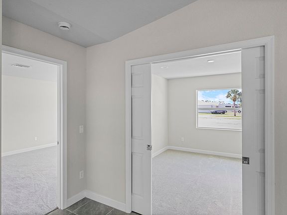 This charming lakefront Cottage blends cozy comfort with spacious versatility, featuring a large open concept layout, 1 bedroom plus a bedroom sized den, and 1.5 baths, thoughtfully designed with hurricane-impact windows, metal roofing, and luxury finishes throughout. The den makes an ideal guest room, office, or hobby space, with space-saving pocket doors and a large window overlooking the back yard. The oversized master bedroom and spacious walk-in closet have vaulted ceilings and the ensuite is complete with quartz countertops and tile floor. The kitchen will feature a matching 1 level quartz peninsula Bar Top with enough length to seat at least 4 and an undermounted sink with a matching quartz backsplash. Guaranteed Fixed long term land lease: $729/month for 99 years.