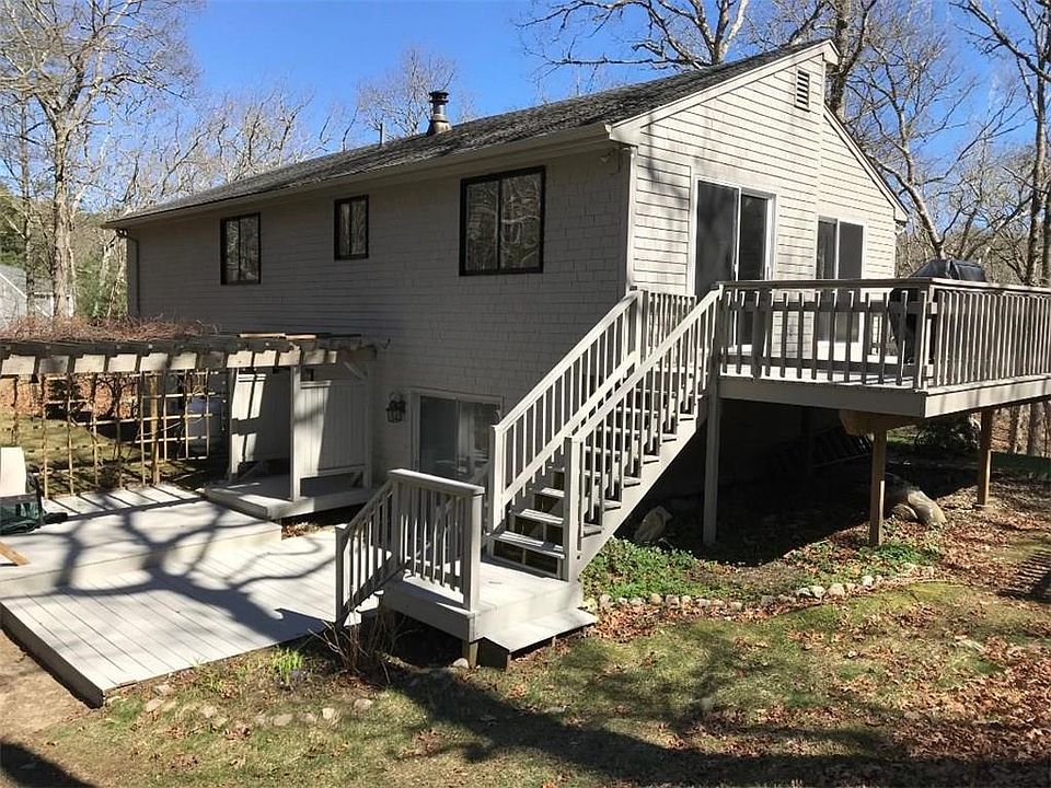 Charlestown living at it's best! Woodmare Estates all on 2 acre wooded lot. Offering 3 bed 2 1/2 bath, light and bright home with large living/diningroom with vaulted ceilings. Large upper and lower decks with outdoor shower and fire pit. Furnished lower level with 1/2 bath and laundry. Small barn in the backyard. Quiet area, a few minutes to Charlestown Beach.