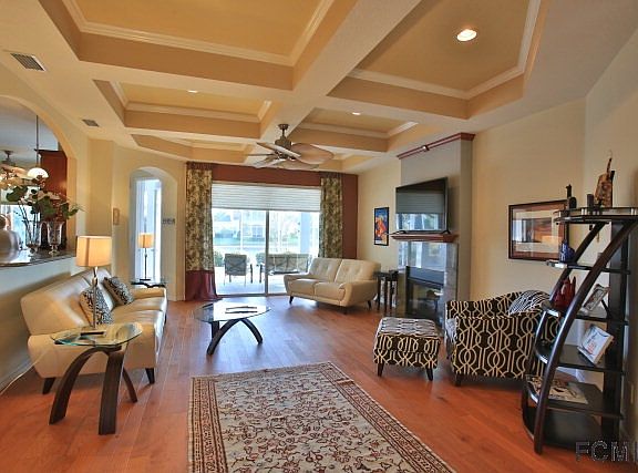 Around the corner from ICW & located in prestigious neighborhood of Front St. of Grand Haven you will find this great rm plan home w/3 car garage! Watch the sun rise from your screened lanai overlooking a lake. Lovely home w/recent updates by the owners. Three bedrooms, two full bath home offers an open floor plan w/a great flow. A chefs delight island kitchen w/granite counters, granite backsplash, 42???cabinets, pull outs in most cabinets & much cabinet space. Newer microwave & refrigerator, dishwasher approx. one year old. Great rm. boasts disappearing sliding glass doors to lanai, dual sided gas fpl and Oak engineered hardwood flooring. Hardwood flooring extends to sitting/reading area too. Much detailing throughout, including master bedroom where you will find trey ceiling w/crown moulding, dual sided gas fpl & Fr. door to lanai. 2 walk-in closets in master, separate vanities in master bath, soaking tub & walk-in shower. 2 add'l. bdrms., one w/SGD to lanai. One Yr. Home Warranty