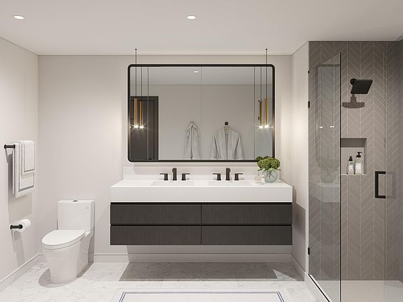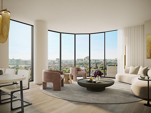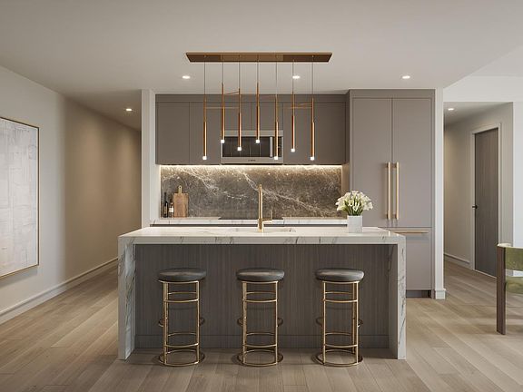 The Parker is a luxury condominium building in the heart of the Theater District, featuring 168 articulately designed studios, one bedroom, and two-bedroom penthouse residences. Centrally located, it offers a 24-hour concierge and doorman with speakeasy-inspired amenities by Zarifi Design. Amenities include a cocktail lounge, billiards room, and private screening room, and are rounded out by a state-of-the-art fitness center and a roof deck perched atop Boston Common with spectacular views of the Back Bay, sunsets over the Charles River, and Financial District. Residences feature a clean design with unexpected details such as sculptural floor-to-ceiling windows and wide-plank white oak flooring. The kitchen boasts a custom Italian marble backsplash with brass finishes and a rich color palette combining materials and textures to create a sleek, dynamic aesthetic. Each layout is efficiently designed to cater to the modern city dweller and offers residents an exclusive lifestyle.