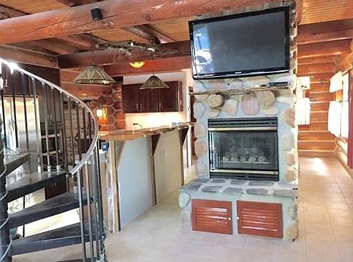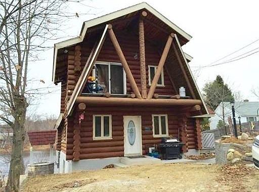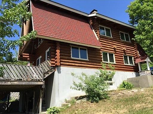 Water front log home with open cncept. Walkout basement level offers second bedroom or fam room amd full bath. Woodstove. Main level livingroom with gas floor to ceilng fireplace, cathedral ceilings window wall onto deck overlooking the water, appliances kitchen with dining area and half bath. Master suite loft accessed by spiral stairway features master bath and stackable laundry. 100 acre Partrdge Pond
