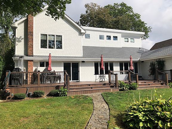 Beautiful 3,998 sf Colonial style on oversize secluded and wooded lot. Property is a waterfront lot with dock. This home is a 5Bedroom, 3 Full Bath, with large open concept living room dinning room and kitchen with a window wall to the park like grounds. Large circular drive and two car garage.Large rear deck Central Air conditioning, alarm and well pump for irrigation