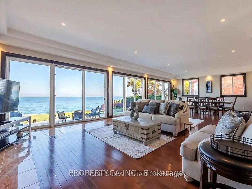 Gorgeous Lakefront Residence! This magnificent home showcases an inviting layout that backs onto Lake Ontario. The sprawling main floor presents awe-inspiring views of the lake from every angle. With soaring ten-foot ceilings, gleaming hardwood floors, a charming wood-burning fireplace, and numerous walkouts to the waterside patio, it's an entertainer's dream. Upstairs, three generously sized bedrooms await, two of which boast access to a balcony for enjoying the picturesque lakefront scenery. The master suite is a lavish sanctuary complete with a deluxe 5-piece spa-style bathroom. Recently renovated, the basement now offers an additional 3-piece bathroom, living area, and two extra bedrooms. Situated conveniently close to the highway, it provides effortless commuting to Hamilton or Toronto.