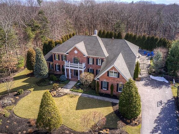 Exclusive enclave "The Woods" is the setting for this elegant classic Hampton Colonial. A 2-story foyer showcases hardwood floors & crown molding throughout including living room while tray ceiling in dining room enhances entertaining. Kick back in the gas fireplaced family room or please the inner chef in the Custom Kitchen offering Grabill cabinets, a large island with prep sink, quartz and granite counters and 5 Sub-Zero appliances. A Bosch dishwasher, hooded Wolf 6-burner propane gas range and mother-of-pearl subway tile backsplash add more style and function. Also on first floor are a Conservatory/Game Room, an Office w/built-ins, a full bath w/Extra-wide shower & Laundry Rm. The Sun Room leads out to the resort-like backyard oasis including a hot tub, in-ground pool, cabana with full bath plus outside shower. The outside kitchen grill, propane fire pit and 3-hole putting green take it to the next level. Sonos sound system wired throughout the first floor, backyard and primary suite. Frosted French doors access primary bedroom with its own sitting room and massive walk-in closet. A chandelier enhances the tiled ensuite primary bath with radiant floor heat and a multi-functional rain and steam shower. 3 additional bedrooms each enjoy ensuite baths. Convenient location off Middle Road provides easy access to EG Main Street, shops, restaurants, stores, marinas, golf, highways, airport, train, Providence, beaches and 1 hour to Boston. A very special offering!