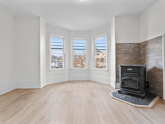 Private en-suite bathroomNew trimHuge front bay windowsExposed brickCustom built-in shelvingCozy wood-fired stoveRefinished original hardwood floors