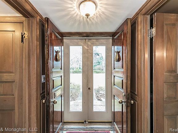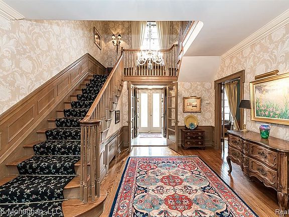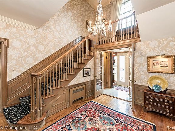 Classic center entrance Colonial by noted Grosse Pointe Architect Frank A Miles. PRIME Farms location a block from the Lake boasting 6 bedrooms, 4.2 baths and over 4300 sf. Attention to detail abounds in this home with majestic staircase, Pewabic powder room, beautiful wainscoting, dental moldings, & woodwork throughout. Updated Woodmode kitchen with island seating, Pewabic backsplash, stainless appliances and loads of cabinet and counter space. Wet bar/butlers pantry just off of the kitchen and Formal dining room-perfect for entertaining. Very generous living room with natural fireplace, ready for family and friends to gather. Paneled library/office perfect for working from home or home schooling. Lovely screen porch, the perfect spot for morning coffee overlooking the fully walled in, private back yard. Both front and back yards are meticulously landscaped with perennial gardens for year round enjoyment. Convenient enclosed motor court with rear loading attached two car garage.