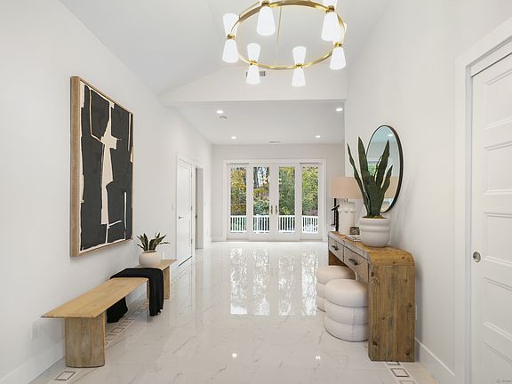 Welcome to 55 Liberty St. Unparalleled modern luxury in this meticulously rebuilt 5-bedroom, 4.5-bath Wilton residence. Set on 1.8 private acres, the home delivers seamless, sun-drenched living across 4,300+ square feet, following a comprehensive 2025 renovation that saw the property rebuilt from the studs up. Step inside to discover European wire-brushed hardwood floors and an effortless, open layout. The heart of the home is a vaulted-ceiling kitchen, featuring contemporary white cabinetry and a full suite of CAFETM smart appliances. Upstairs, the spa-like primary suite is finished with Natural Marble and luxurious gold Kohler fixtures, offering a perfect sanctuary. The lower level is designed for wellness and flexibility, hosting a brand-new sauna and a spacious recreation room. Further enhancing the property is a new detached two-car garage with second-story potential for guest quarters or a private office. Engineered for efficiency, the residence features a Bosch Hyper Heat HVAC system and a new Solar Array. Positioned moments from the Wilton Metro-North Station, this move-in-ready offering combines sophisticated, sustainable design with exceptional convenience. A rare opportunity for a turnkey luxury lifestyle.