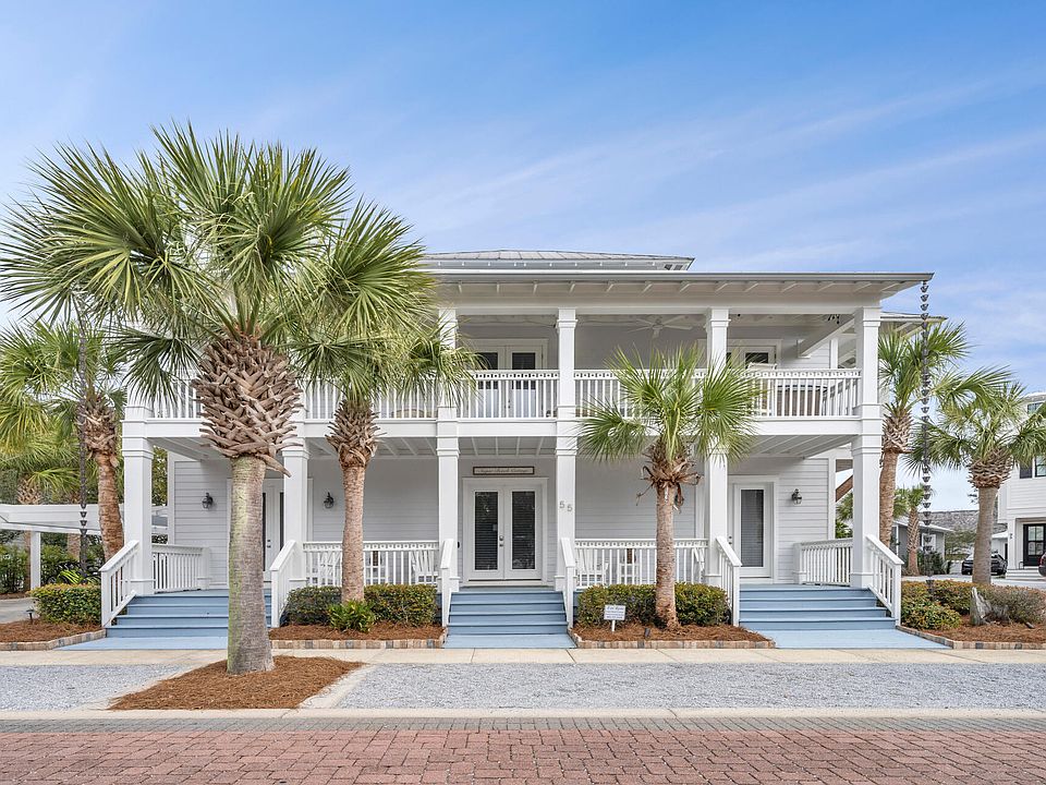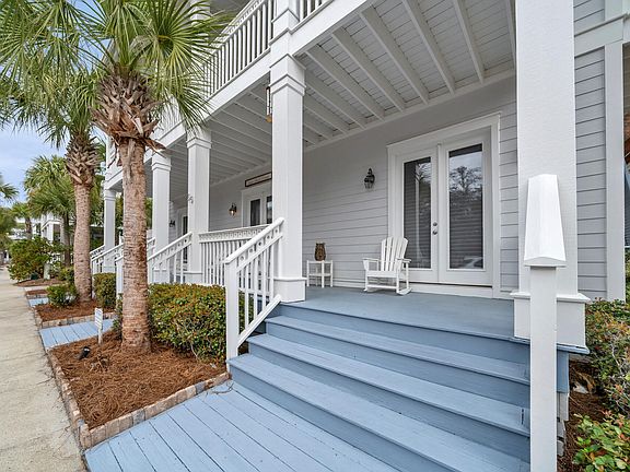 Situated on a prime CORNER location, this home is an idyllic setting for everyday living and entertaining or for a vacation rental/investment property. This home exudes Florida elegance, communicated through beautiful finishes, superb craftsmanship and decadent amenities. 4 bedrooms plus 4.5 bathrooms are spread across three floors and THREE expansive porches that run the length of the home! Inviting, light-filled rooms welcome you, while the home's coastal chic ambiance suggests casually elegant living and entertaining in all seasons. This beautifully designed Caribbean style home has high end finishes throughout including: 10' ceilings, 8' doors, triple crown molding, a gourmet kitchen with state of the art appliances (including gas stove), custom window treatments, hardwood floors, all tile baths, outdoor shower, and much more. There are two ensuite master bedrooms and bathrooms, another large ensuite bedroom, and a bunk room with its very own bath! Each floor has its own living area for multiple entertainment areas. Seacrest Beach is located within easy walking, biking or driving distance to Alys Beach, Rosemary Beach and all of the great restaurants and entertainment along 30A. The beach is quick to access via the seasonal tram service for hop on, hop off beach service! Enjoy the palm lined streets, guest parking, 1.3 miles of unmarked trails and South Walton's tallest sand dunes.
