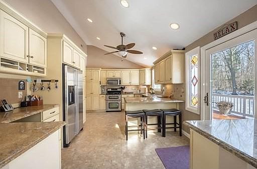 Turnkey Ranch style home near Sanborn School and Indian Ridge Country Club. This 3 bedroom home features a newer kitchen with granite countertops, breakfast bar, Stainless Steel appliances, cathedral ceiling, ample custom cabinetry and access to a large deck overlooking a private level backyard. The sun filled dining room and family room with fireplace are also renovated and offer hardwood flooring, fresh wall paint, cathedral ceilings with skylights and access to a rear patio. The formal living room features hardwood flooring, crown molding and second fireplace.The bedroom wing offers 2 updated baths, ample closet space and hardwood flooring. Downstairs you'll find a play room or family room, exercise area and ample storage. The newer roof, hot water heater and Andersen windows add to the value in this move in ready home!