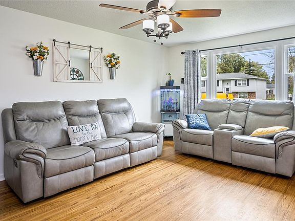 This one is done! Maintenance free living for many years to come! This 4 bedroom, 1.5 bathroom home includes updated vinyl siding, vinyl windows and a 30 year architectural roof with many years of life left. A recently added concrete stamped patio and Trex porch invite you through the front door. Newly refinished hardwood floors and a freshly painted interior welcome you home. The eat-in kitchen includes quartz counter tops and stainless steel appliances. Plenty of storage and two windows over looking the backyard. Two of the four bedrooms are large enough to hold a king size bed! The upstairs bedrooms each feature two closets. Both bathrooms include solid surface vanities and newer flooring. The partially finished basement is the perfect balance of storage and functionality. Glass block windows already in place! Currently used as a gym/family room. The back yard is fully fenced in with matured tree line providing extra privacy. Extra large gate to back yard is perfect for storing toys in the backyard during off season when not using extended driveway. Play set, trampoline & both sheds stay! Hot tub negotiable! Move in and do nothing. Delayed negotiations until 10/16 at 12pm.