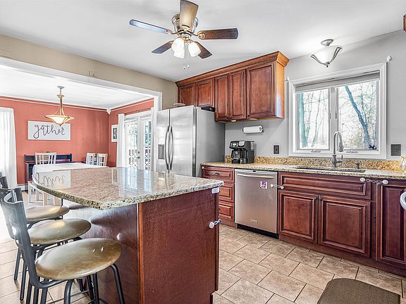 Nestled in the desirable Smyth Road School District in Manchester, this charming home has ample room to live, work and play. Boasting a classic Colonial style, this home features a welcoming wrap-around porch, perfect for enjoying your morning coffee or evening gatherings. Step inside and discover a spacious interior including finished space in the basement and large mudroom area, solid wood cabinets, stainless steel appliances, granite countertops, a kitchen island perfect for mornings on the go, a separate dining area with pellet stove and french doors leading to back deck overlooking your fenced in yard, raised garden beds, and above ground pool for endless summer fun and entertaining. The second floor features 3 generous sized bedrooms including a primary bedroom with en-suite. Conveniently located in a quaint, 5-house cul-de-sac neighborhood, this property features solar panels to keep your energy costs low, offers easy access to highways, and abuts McIntyre ski area.