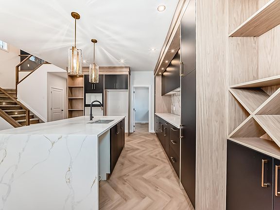 UPGRADED HOME BACKING GREENSPACE IN THE COMMUNITY OF MCLAUGHLIN! This home boasts 2557 sq/ft with 4 bedrooms, 3 full baths, bonus room & 9ft ceilings on all three levels. Main floor offers vinyl plank flooring, bedroom/den, family room with 18ft ceiling, fireplace. Kitchen, with modern high cabinetry, quartz countertops, island, & BUTLERS PANTRY/SPICE KITCHEN, is made for cooking family meals and entertaining. Spacious dinning area with ample sunlight is perfect for get togethers. The 3 piece bath finishes the main level. Walk up stairs to master bedroom with 5 piece ensuite & spacious walk in closet, 2 bedrooms with walk in closets, full bath, laundry and bonus room. Unfinished basement with separate entrance and roughed in bathroom is waiting for creative ideas. Public transit to Edmonton, & more than 40 km of trails, your dream home home awaits. Includes:DECK/TRIPLE PANE WINDOWS/ WIRELESS SPEAKERS/ GAS HOOKUP ON DECK