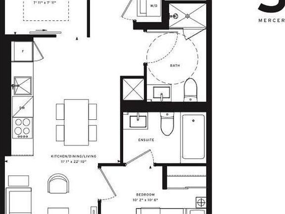 1 Bedroom +Den Unit in Toronto's Entertainment District! Indulge in luxury living with a captivating layout and south exposure. Where you are steps away from the Rogers Centre, CN Tower, Union Station and surrounded by the city's premier entertainment and dining establishments. This functional 657-square-foot unit acts as a 2 BED! With expansive 9-ft ceilings, an open-concept kitchen adorned with built-in appliances and quartz countertops and two full washrooms. The separate den, enclosed by sliding doors, presents a versatile space that can serve as a second bedroom or a home office. Elevate your lifestyle further with access to 'The Mercer Club,' a hub of modern fitness, co-working spaces & entertainment options. The fitness centre includes Peloton pods, cardio, cross-training zones, along with a yoga studio, sauna, basketball court & outdoor fitness centre. 100 Transit Score, 98 Walk Score & 90 Bike Score!