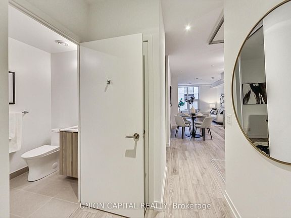 Beautifully designed 2 bedroom plus den unit in the newly built 55 Mercer Condominiums by Centrecourt. With 738 sq ft of well appointed living space, this north-facing unit offers a serene retreat in the heart of the city. As you enter, you'll be greeted by an open-concept layout that maximizes space and light. The bright living area is perfect for relaxation and entertaining, while large windows provide an abundance of natural light. The contemporary kitchen is equipped with high-quality appliances and sleek cabinetry. The separate den provides an ideal space for a home office, nursery, or cozy reading nook. As a resident of 55 Mercer, you'll enjoy access to The Mercer Club which offers 3 floors of state-of-the-art fitness, co-working and entertainment spaces. Parking available upon request.
