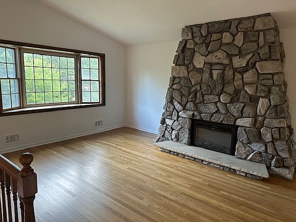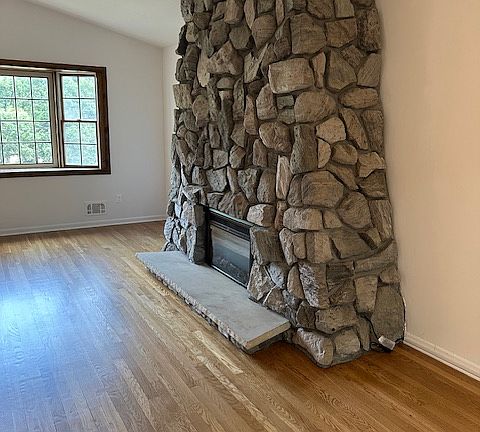 High ceilingsVery private backyardNew electric insertLarge stone-fireplaceNewly refinished hardwood floorsLarge patioNew laminate flooring
