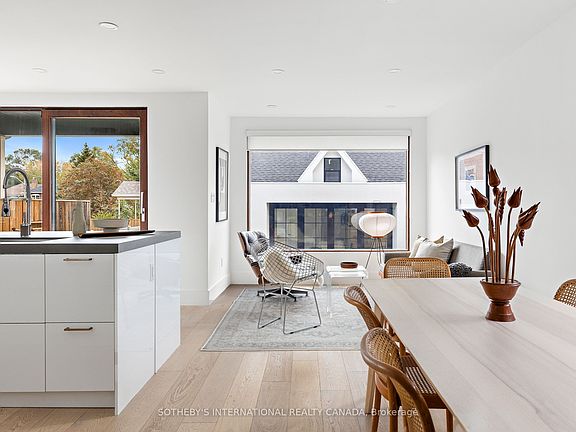 A rare and exquisite offering. This architect's own modern residence and additional stunning coach house have been artfully reimagined to accommodate multi-generational living or a seamless live-work lifestyle. Every detail reflects an extraordinary commitment to design. Soaring ceilings and walls of custom Marvin windows bathe the interiors in natural light, while a balanced palette of wood, concrete, and tile creates warmth and modern elegance. The main level's open layout flows effortlessly to an outdoor deck overlooking a lush private backyard. At its heart, a sophisticated kitchen with a 10 foot Laminam island, Miele gas cooktop, and integrated appliances invites both intimate family moments and elegant entertaining. A separate lounge anchored by a decorative brick fireplace offers a serene retreat ideal for reading, reflection, or quiet conversation. Up the custom oak staircase, three bright bedrooms and a spa-inspired wet room with antique clawfoot tub and double vanity form a tranquil upper level, designed for rest and renewal. The bright lower level provides a self-contained studio suite perfect for extended family or guests. But wait, the piece de resistance is the 600 sq. ft. fully insulated Coach House, a true architectural statement. With 15-foot ceilings, a loft, and fully retractable Marvin glass doors, this inspiring space offers endless possibilities as a creative studio, guest quarters, or private sanctuary. Polished concrete floors have been fitted for radiant-heat should you decide and the kitchen area and wet room bath ensure comfort in every season. Set within Mimico's most idyllic lakeside enclave, moments from waterfront parks, cafés, library, schools, Montessori, tennis courts, neighbourhood heated outdoor pool, arena, markets, shops, grocers, TTC and the GO station. This is truly an exceptional property!