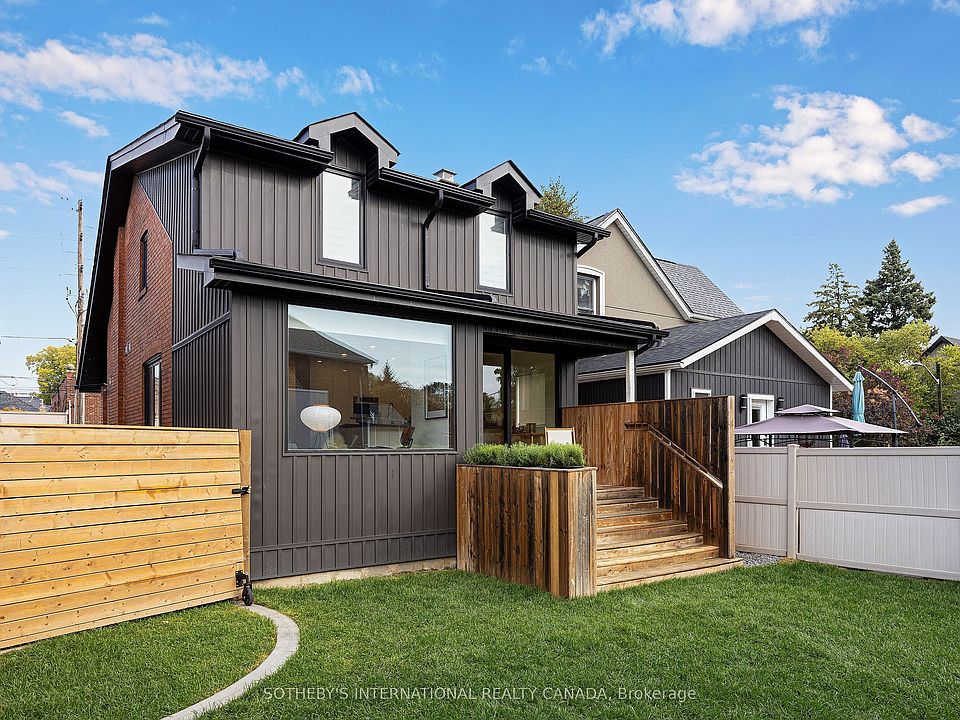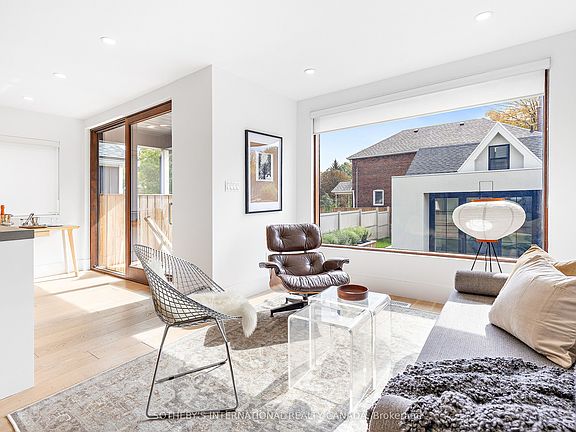 An architect's own residence. Recently rebuilt from ground up with over $700K in renovations and 2,200+ sq. ft. of refined living space featuring all-new electrical, plumbing, mechanical, and structural systems. Designed for multi-generational living, sophisticated live-work use, every element executed with artistry & precision. Custom Bauhaus windows & doors flood the interiors with natural light, revealing soaring ceilings, warm wood & sculptural layers of concrete & tile. The open main level unfolds to a private deck and lush lawns, with a chef's kitchen anchored by an 8-foot Laminam island & Miele appliances designed for entertaining, conversation & cooking. A private main-floor salon, complete with decorative fireplace & powder room, offer an intimate space for reading, quiet reflection, or evening gathering w friends. A sculptural white oak staircase, bathed in natural light from a vertical window, leads to the upper level where calm and proportion define the private quarters. Three bedrooms with custom rift-cut white oak cabinetry are anchored by a spa-inspired bath with rain shower, antique clawfoot tub, double vanity & private water closet - a true sanctuary of quiet luxury. The lower level expands the home's flexibility featuring a self-contained studio suite w kitchen & bath - ideal for extended family/guests/or creative workspace. A 600 sq.ft. Modern Coach House showcases 15ft ceilings,a loft & accordion glass doors that dissolve the boundary between indoors & out. Radiant-heated concrete floors (roughed in) bring warmth and comfort, while a wet room & partial kitchenette allow for the perfect atelier, retreat, or studio. With commercial zoning (buyer to verify intended use), the property offers exceptional flexibility & future opportunity. Set on a tree-lined street in Mimico's coveted lakeside enclave, minutes to Waterfront, Parks, Schools, Montessori Daycare, Mildenhall Montessori School, Birds & Beans Café, San Remo Bakery, Groceries, Bus, GO Station