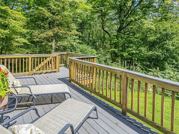 Screened porchExposed beamsBreakfast barFinished walk-out lower levelRec roomBright family roomBay window