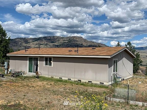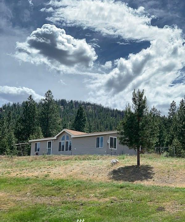 Top of the World View - Tonasket - Approximately 7 Miles from Town - Seasonal Creek - SHOP and MH featuring 3 bedrooms including master bedroom/two bathrooms, living room with large picture windows looking out to the BEAUTIFUL Aeneas Valley, dining area with slider out to yard, kitchen with island and appliances including water softener, laundry room, unique vaulted ceilings, and ceiling fans. Oversized tubs in bathrooms. Internet is connected. Property is surveyed. Shop is metal siding and roof, cement floor, and plumbed for water and power. Utilities buried. Ham radio ready. $374,900 H-2949/MLS1793533