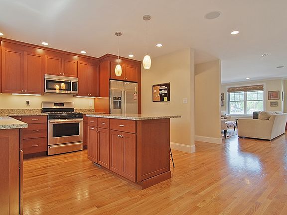 OPEN HOUSES: SATURDAY 8/1 and SUNDAY 8/2, 2-3:30pm. Stunning 2010 townhouse in East Arlington. Enjoy over 2,000 square feet of living space on 3 levels. This unit offer 3 generous sized bedrooms and 2.5 baths. Gorgeous hardwood floors throughout. The kitchen features cherry cabinets, granite counters, stainless steel appliances and surround sound speakers (that also extend to the outside). Master bedroom has a custom walk-in closet. Second floor laundry. Bonus space on the 3rd floor for a home office or family room. Central AC for the summer. In the winter, you will love the 2 car garage with heated driveway. There is a fantastic private & fenced professionally landscaped yard. Super location across from Thompson Elementary School and playground. Easy access for commuting via highways or the commuter rail.