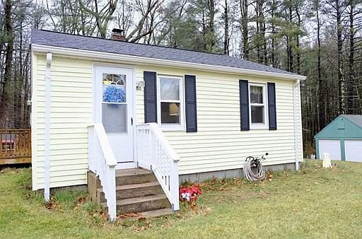 Gorgeous Renovated Ranch Style Single Family home located for a Corner Lot on a Lovely Treelined Street in a quiet neighborhood in Wrentham.Consisting of 4 rooms,2 bedrooms,livingroom,eat in kitchen and 1 bathroom..ALL recently done over,new kitchen,bathroom,walls,ceilings,paint,electric & plumbing updated,all hardwood floors refinished,new roof,deck,hot water tank,new private sewerage,new garage doors...All ready to move into this very pretty Ranch.Huge lot of near 1/2 acre...lots of room for potential expansion!Basement for storage & laundry hook ups.Oversized 2 car garage with work shop area/extra storage plus 2-3 more parking in front driveway.Nice landscaped yard.Close to major routes/highways(Rt 1,1A,495,140 & 95).Easy access to Shopping,Gillette Stadium & Forboro etc...A Gem....Open House Sunday 1/16..from 12-1.30pm