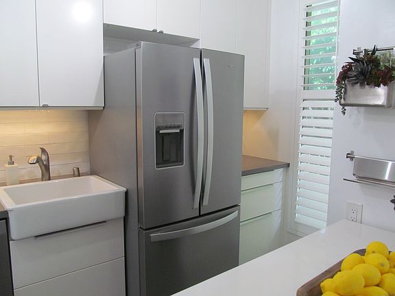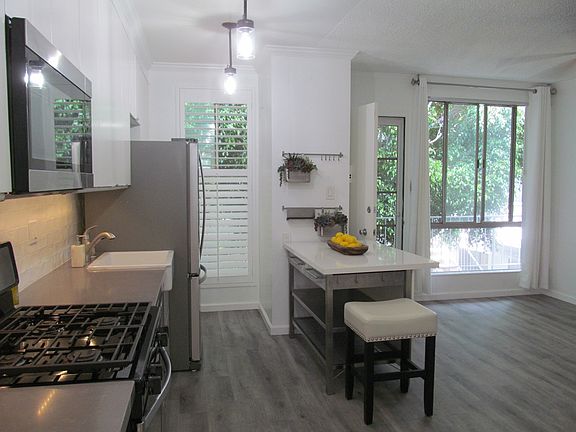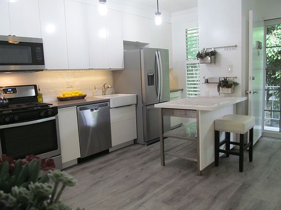 ALL UTILITIES PAID; Gas, Water, Electric , Trash PLUS Parking Included...FRIENDLY BEACH COMMUNITY! Apt #203 is a one bedroom, one full bath located on the border of Venice & Santa Monica. Wood laminate flooring throughout as well as crown molding. All appliances are stainless steel; dishwasher, microwave, gas range, refrigerator with French doors, bottom freezer with ice maker. White farm sink, quartz counter tops, under cab lighting, back splash tiled, soft close drawers, island with additional drawers, shelves and comes with two bar stools for island plus plantation shutters in kitchen. Comes with curtains & vertical blinds for large living room window that over look the courtyard trees + coat closet at front entry. Ceiling fan in bedroom and living room fan with remote control. Comes with an electric fireplace with remote control (ambiance only or thermostat settings). Floating vanity in bathroom, lit mirrored cabinet, full linen closet, frosted french door and additional mirrored vanity cabinet over commode + barn door. Bedroom has frosted 4-lite barn door, plantation shutters, large mirrored closet and upper/lower built-in dresser w/ soft close drawers. Laundry room has PayRange phone app or WASH card option and is located off the courtyard, as is the bike and surf board room. Front entry is gated with directory, intercom and security cameras. Parking is in gated garage + additional private storage bin over parking space. 55 Navy is a non smoking property. We are cat friendly, with a no dog policy...so sorry (ESAs' & visiting dogs' permitted). All viewings are by appointment due to the property being gated. Once you arrive to see the property, please call my cell phone to let me know if you will be needing a place to park and I will come down to open door or garage gate :) Thank you and I look forward to showing you our charming little community that's only steps from the beach!