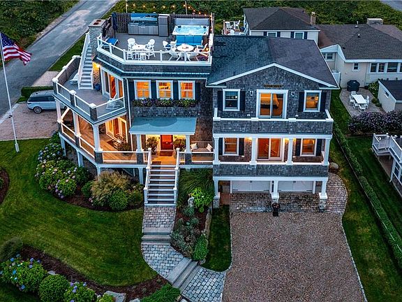 Welcome to “Point of View”.. An absolutely breathtaking builders home set overlooking Point Judith Light House, the entrance to Narragansett Bay, and Block Island Sound. Views include Block Island to the Newport Bridge! Built with only the finest building products and crafted to last for generations. Easy Living on the first floor with everything there including a dramatic primary suite with a private IPE deck,. The second floor has two more beds and 2 more baths, a gathering room with full wet bar and more decks. The rooftop entertaining area boasts a 10 person spa, wet bar, and quite possibly the best views in Rhode Island. The walkout lower level has rough plumbing for another full bath and a private entry and 2nd driveway for future in-law set up or guest suite. NO FLOOD INSURANCE NEEDED! Features include, 2 fireplaces, two wet bars, generac generator, chefs kitchen with 2 dishwashers, 2 car garage, alarm, central vac, beach access, and a lifestyle that you have dreamed about!