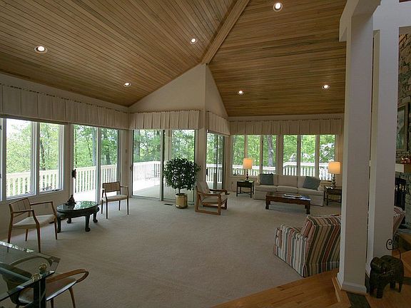 Beautifully updated with premium materials and impeccably maintained, this home is move-in ready! New kitchen w/breakfast area and fireplace, Mouser cabinetry, SubZero and Wolf appliances, lovely quartz countertops, large island with beverage center and microwave drawer. All 3 bathrooms have been renovated as well. This home has dramatic architectural lines and soaring ceilings giving it a slight contemporary feel, yet still warm and inviting. The large rooms and partial open floorplan provide for great entertaining. Downstairs has 2 bedrooms and a bath, plus a suite with family room incl. fireplace, bedroom and bath. Enjoy mountain views and the gorgeous landscaping, including fabulous water feature, from most rooms. Favorite spot is the 4-season room with 3 walls of windows. Plus spacious wrap around Trex deck and cable railing. Located in Champion Hills #51 golf community in the Nation. Just 8 minutes to grocery stores, galleries, breweries, restaurants, good health care etc.