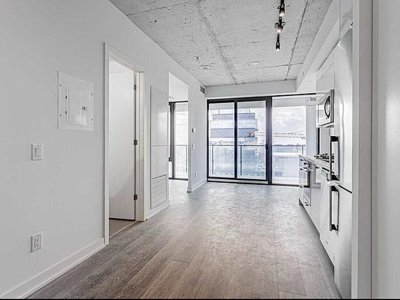 Sun filled west facing One bedroom unit with 19 feet balcony and 9" ceilings. The building is only a year old. The primary bedroom has a large closet and operable window. Modern kitchen W/ Gas stovetop, entrance, Foyer W/ Closet Spacious bathroom with ample storage and a deep seeker tub Amenities include: Concerige, Outdoor Pool and Deck, Gym, Party Room, Visitors Parking & more! Tenant pays for insurance, hydro and heat pump rental which is $40 monthly No pets No Smoking