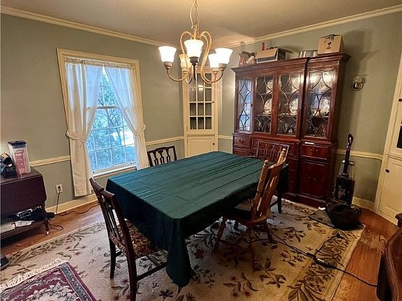 Through the front doors of this beautiful, unique cape cod, you are greeted to a large foyer which opens up to the dining room as well as the main living space equipped with a wood burning fireplace. Off the living room features an additional living space, which is currently being used as a storage room. The dine-in kitchen offers knotty pine cabinets and is bursting with character. The second floor offers 3 spacious bedrooms and two full baths. No space is wasted with the substantial amount of built-ins this home possesses. The large, fully fenced in back yard provides adequate privacy as well as a concrete patio. Call today to make this your home!