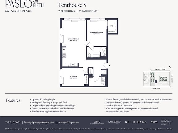 *DURING YOUR TOUR, ASK ABOUT EXCLUSIVE MOVE-IN SPECIALS. AVAILABLE FOR A LIMITED TIME!* Paseo on Fifth is a vibrant new residential development in the heart of Park Slope, Brooklyn. Nestled within The Paseoa thoughtfully designed pedestrian passage where Fifth Avenue meets Sterling Placethis one-of-a-kind address offers a peaceful retreat amid the energy of the neighborhood. Framed by curated retail and local charm, The Paseo fosters a unique sense of community and calm just steps from home. Enter the exquisite residences at Paseo on Fifth, where sophisticated design meets modern practicality. From airy studios to expansive two-bedroom apartments, explore a range of layouts with luxurious finishes to enhance your daily living. Residences feature up to 10' 9" ceiling heights, wide plank flooring in a light oak finish, and floor-to-ceiling windows that flood interiors with natural light. Quartz countertops, custom tile work, and Kohler fixtures with rainfall showerheads elevate kitchens and baths with refined detail, while stainless steel appliances from Bosch and Samsung add modern functionality. At Paseo on Fifth, you will find an amenities suite that truly harmonizes with your daily rhythm. Dive into a meticulously designed environment where everything from the cutting-edge gym and yoga studio to the plush coworking spaces transforms everyday tasks into elements of a curated lifestyle. Seamlessly transition from productivity in our high-tech workspaces to relaxation in The Hub, each space crafted with a keen eye for function and style. Attended Lobby/Virtual Doorman Rooftop Garden Rooftop Terrace The Library Paseo Lobby Lounge The Courtyard The Hub The Suite The Gym & Yoga Studio Coworking Lounge Second Floor Terrace The Playhouse Crafts Studio Smart Package Room Bike Storage Laundry Convenience Resident Storage Onsite Valet Parking *Tenant Fees & Responsibilities* Prospective residents are responsible for the following fees, subject to lease or service agreement terms: Application Fee: $20 per person Security Deposit: 1 month's rent Amenities Fee: $50/month per tenant Storage: $50 - $75/month Bike Storage: $15/Month per bike Pet Fee: $25/month per pet Utilities: Rent includes hot water and sewage; residents cover electricity, cable, and internet. Schedule a tour today to experience life at Paseo Park Slope. Now Leasing.