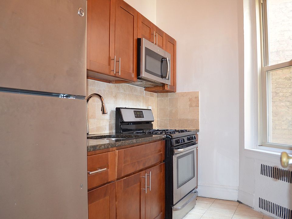 Renovated. Large 2-rms apartment in beautiful elevator building with common outdoor, bike room and laundry in the building.