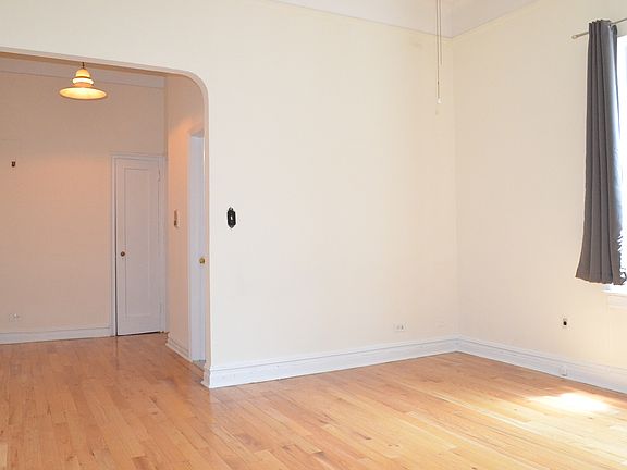 Apartment has hi ceiling, hardwood floors full size working kitchen with dining are off the kitchen and large living/bed room.
