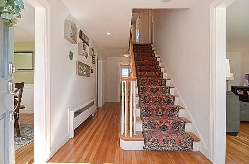 WELCOME HOME to this 4 bedroom 2.5 bath Colonial waiting for a new homeowner! Bathed in Natural light, this property offers a renovated Kitchen with SS appliances, Quartz countertops, Undercabinet lighting, & Tile floors. DR is enhanced by decorative molding and comfortably seats 6-8 people- perfect for entertaining family & friends. Generous size FR with fireplace.1st Flr Bedroom/Office/Playroom with views of the large fenced-in backyard which is an ideal set-up for gatherings. Hardwood Floors throughout. 3 bedrooms & 1 full bath complete the 2nd floor. Finished walk-out basement adds additional square footage. Updated Roof, Hot Water tank, Furnace & Windows. Conveniently located near major highways, shopping, restaurants, and downtown. Start the summer off right and unpack your bags and move right in.! Showings begin Fri 4/1. Open House Sat 4/2 & Sun 4/3 12p-2p.