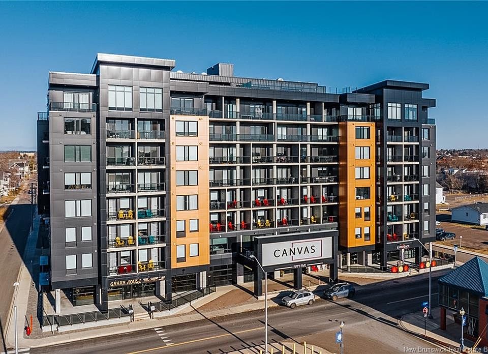 Welcome to 55 Queen, where urban sophistication meets effortless convenience. This condo offers 1,141 square feet of open-concept living space plus a secure separate storage room of 157 square feet, giving you a total of 1,298 square feet of usable space. Inside, you will find 9-foot ceilings, two spacious bedrooms, and two bathrooms. The thoughtfully designed kitchen features a custom walk-in pantry with cabinets and a quartz countertop, along with under-cabinet lighting and additional cabinetry with a glass door for both function and style. The ensuite bathroom includes extra cabinetry for storage and glass shower doors with ceramic finishes, creating a clean and modern look. Enjoy bright south-facing exposure and beautiful city views from your large private balcony. The home includes one underground parking space with additional storage, and residents have access to a 24-hour secure training center. Relax or entertain on the interior and exterior rooftop terraces, offering some of the best views in town. Located in one of Moncton’s most desirable developments, you will be steps away from premium amenities including Gahan House Restaurant, the chic Palette Rooftop Bar, Bar55 Café, and the Canvas Hotel on floors 2 through 4. This is more than a home, it is a lifestyle. Experience the best in downtown luxury living. Take the 3D tour or contact your REALTOR® today to book a private showing. Note: Property taxes are based on non-owner occupied status.