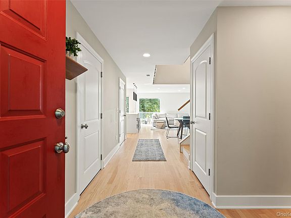 Walk to all from this exquisitely reimagined end-unit condominium in the Fieldpoint community. Resort-style living awaits in this thoughtfully re-imagined home, designed with sophistication and uncompromising attention to detail for the modern connoisseur. Step into the dramatic open-concept layout, with soaring ceilings, white oak hardwood floors, and expansive windows which flood the interiors with natural light. The show-stopping chef’s kitchen features Wolf appliances, a Sub-Zero refrigerator, custom cabinetry, and a striking waterfall island that serves as both a culinary hub and design centerpiece. The living and dining areas exude modern sophistication, anchored by soaring double-height ceilings and a striking staircase with glass balustrade railings that serves as a bold yet refined architectural statement. An updated powder room, attached one-car garage and laundry complete the main level for ultimate convenience. Upstairs, find two well-appointed bedrooms with a hall bath, alongside a luxurious primary suite offering vaulted ceilings, a custom walk-in closet, and a spa-inspired bath. Enjoy morning coffee or evening gatherings on the new Trex deck, overlooking the serene grounds of Fieldpoint. Residents of this sought-after community enjoy unparalleled amenities, including a pool, tennis courts, clubhouse with gym, and playground—all within close proximity to town, train, and schools.