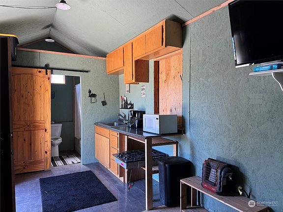 Hunting plans? This is the place to be! Come enjoy this adorable cabin & bunkhouse setup w absolutely stunning views! Cute A-Frame 14x16 bedroom cabin w separate 10x27 kitchen/bath/living rm bunkhouse featuring full bath, wired in propane generator, spacious living area & cute kitchen. Also features a 9x10 storage/pump house. A 550 gallon septic & 550 gallon water storage 300 of it underground & plumbed to the cabin by gravity feed. On demand hot water for your bath! Close enough to town for grocery runs but far enough for tons of privacy! Excellent hunting! Deer, turkey, moose, elk! This is a must see in person, pics don't do it justice! sq ft reflected is both buildings total together. ck w your local credit union for possible financing!