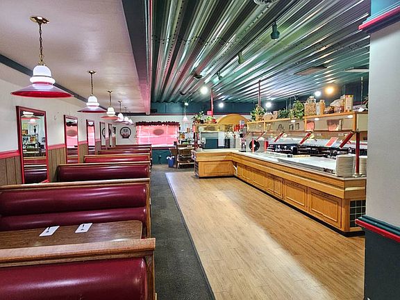 Large commercial building on 1+ acre in a prime location! This building was most recently operated as a Valentino's Restaurant with excellent visibility and parking for busses and large parties. Sale includes all restaurant equipment, specifically convection ovens, refrigerators, coolers, tables, chairs, cookware, serving dishes, silverware, buffet, cash registers and more! Large walk-in cooler. Main restaurant plus additional meeting rooms and dining spaces for additional business or rental income. This property is sold AS IS/WHERE IS, with no warranties or guarantees given or implied by selllers or seller's agents involved in this transaction. Any inspections done by buyer are for informational purposes only and are not included as contingencies of the sale of this property.