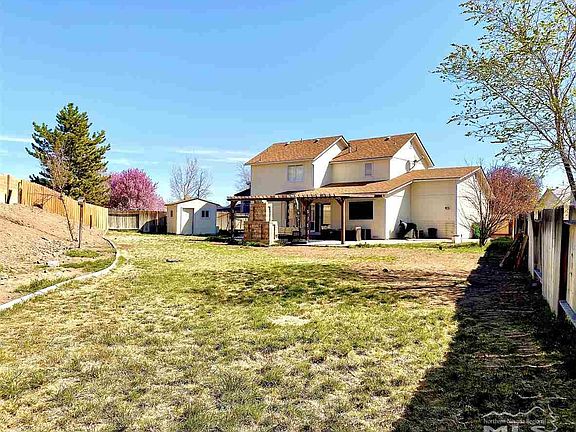 1/3 acre Cul-de-sac lot and 3 car garage! Light open floor plan with high ceilings. Newer Remodeled kitchen with new countertops, cabinets, flooring and stainless appliances. Newer Roof. Dual paned windows and A/C. Family room with beautiful custom stone fireplace. Master bedroom with view of mountains, walk-in closet, shower stall and garden tub. Jack and jill bath off other bedrooms. Backyard patio private paradise with new pergola and outdoor fireplace. Auto Sprinkler system. Storage shed stays.