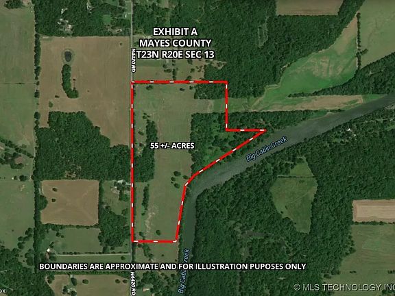 Located just outside Vinita, this 55+/- acre property offers a versatile opportunity for farming, livestock, or recreation. The land runs along Big Cabin Creek, providing a scenic backdrop and potential water access. With a mix of open pasture and tree cover, it’s well suited for a variety of uses. Enjoy wide open views perfect for taking in Oklahoma’s beautiful sunrises and sunsets. Access is easy with paved road frontage, and the property’s size and setting make it ideal for those looking to enjoy country living while staying close to town conveniences.